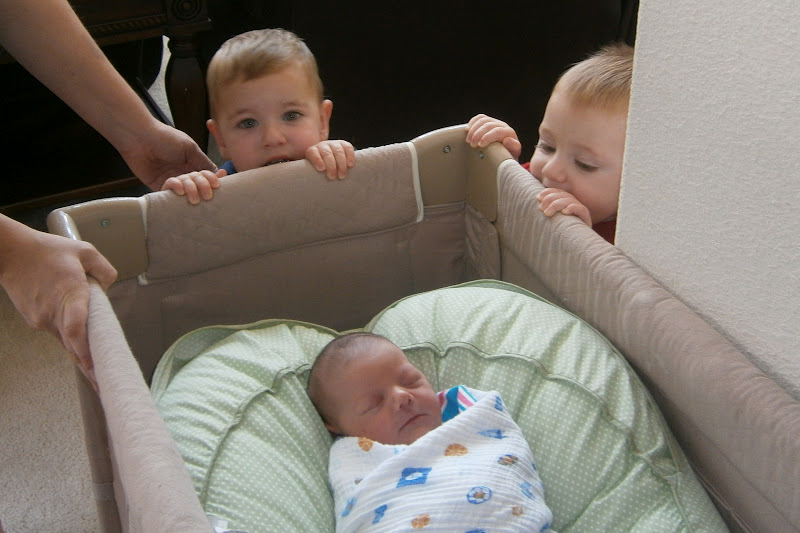 The boys are in diapers at night still. I just don't see them ready for night-time training for a while. Every morning their diapers are saturated. Plus, they are still in cribs and wouldn't be able to get out and go anyways. Again, I'm up at night with Luke and may not be able to get to them right away when they call for us to go potty.